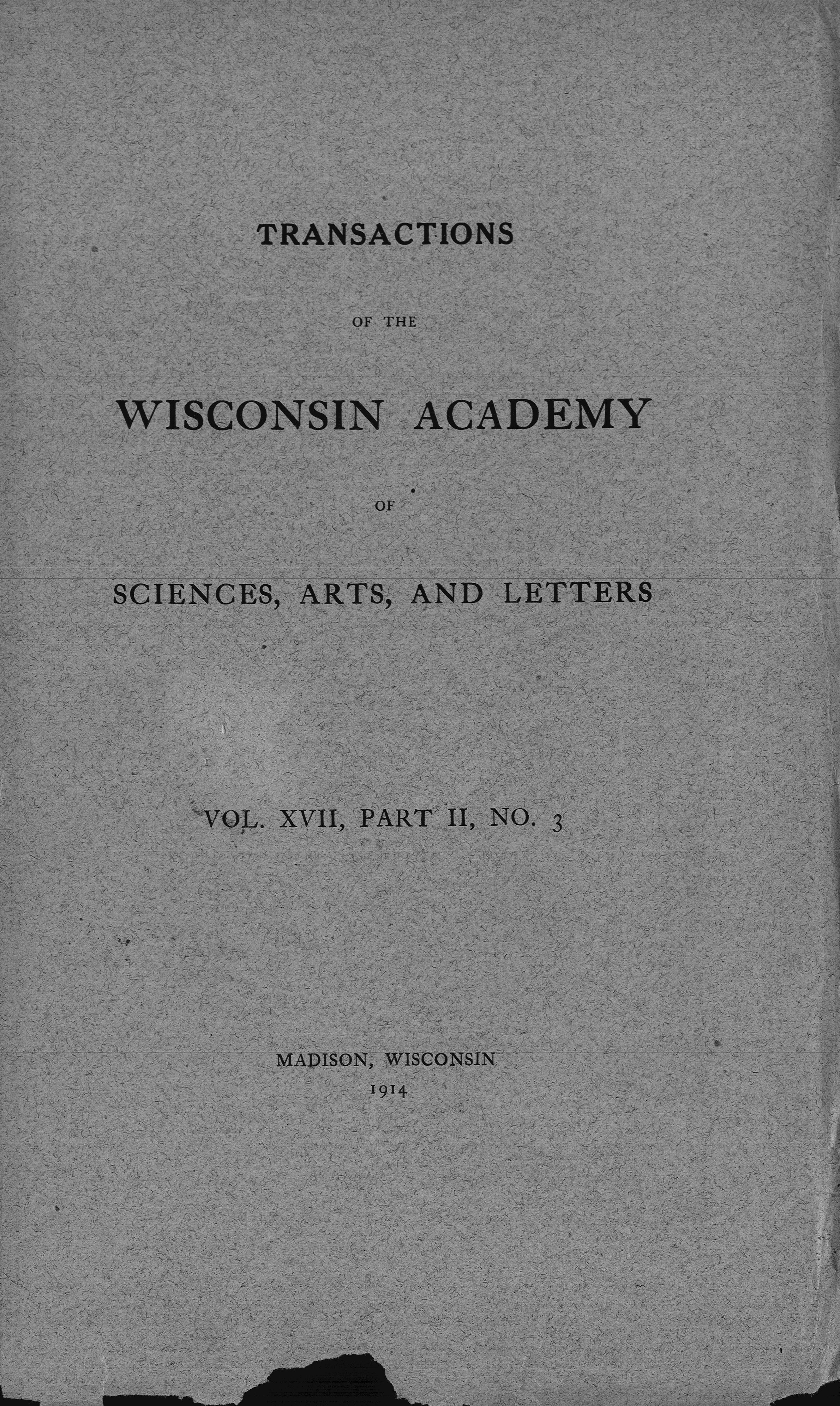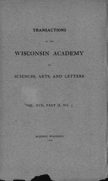 Transactions of the Wisconsin Academy of Sciences, Arts and Letters volume XVII, Part II, No. 3 1914